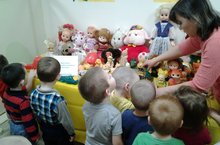 Сегодня наших малышей порадовали родители воспитанников. Они показали кукольный театр "Теремок" . Наши родители - настоящие артисты. Они с удовольствием сыграли роли мышки, зайчика, лисы и других героев сказки. Дети были в восторге.