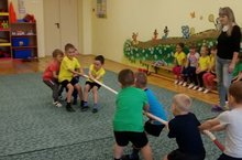 В детском саду между средними и старшими группами прошли спортивные соревнования "Веселые старты". Воспитанники участвовали на различных соревнованиях и получили огромную радость от игр.
