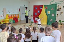 Познавательная программа с игровыми элементами не оставила равнодушным ни одного маленького зрителя! В интересной подвижно-игровой форме дети закрепляли свои знания по правилам ПДД! Полицейский инспектор грамотно и доходчиво объяснял детям, как правильно переходить проезжую часть, пользоваться светофором, знаками, а также воспитанники повторили правила поведения в общественном транспорте.