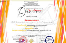 Укучыларыбызны һәм укытучы Шәймәрданова З.К. "Арт-движение" Халыкара иҗат фестивалендә җиңүләре белән котлыйбыз. Фалахова Алсу 1 дәрәҗә Лауреат, Давыдова Славяна 2 дәрәҗә Лауреат исеменә лаек булды! -