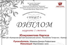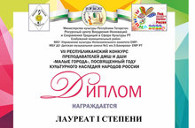 30 апрельдә Алабуга шәһәрендә Россия халыклары мәдәни мирас елына багышланган "МАЛЫЕ ГОРОДА" балалар һәм сәнгать мәктәбе укытучыларының VII республика конкурсы узды. "Халык инструментлары (кыллы-кыскычлар)" номинациясендә "Надежда" инструменталь дуэты Нәбиева С.Р. һәм Хәкимуллина А.Л. 1 дәрәҗә Лауреат исеменә лаек булдылар! Котлыйбыз!!! -