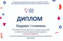 1 декабря в ДМШ №18 г.Казани состоялся V Республиканский фестиваль-конкурс для детей с ограниченными возможностями здоровья - учащихся ДМШ и ДШИ «СЛУШАЯ СЕРДЦЕМ» в рамках Республиканского конкурса детского творчества "100//ЛИЦА". Учащиеся нашей школы приняли активное участие в фестивале-конкурсе. По итогам конкурса: