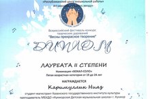 Мухутдинова Замира (преподаватель Семенова С.В.) в номинации "Специальное фортепиано" - Дипломантом 1 степени.