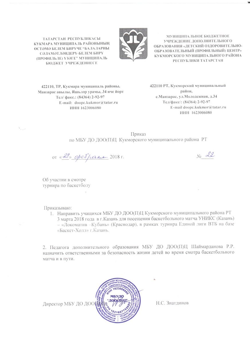Короткое название: МБУ ДО ДОО(П)Ц Кукморского муниципального района РТ