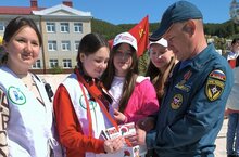 Юнармейцы военно-патриотического клуба «Юный спасатель» приняли участие в акции «Георгиевская ленточка". Они раздавали георгиевские ленты на улицах города, в общественных местах.