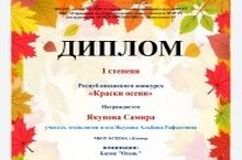 С целью привлечения внимания к времени года Осень, к изменениям окружающего мира, к красоте природы в осеннее время проводился республиканский конкурс «Краски осени», где учащиеся ЦДТ «Галактика» приняли активное участие. Рамазанов Ильгиз, Рахимуллина Индира, Халиуллина Дилуза. Якупова Самира, Пахомова Елизавета и Ермолаева Карина стали обладателями Дипломов 1 степени. Руководители – педагоги дополнительного образования Якупова Альбина Рафхатовна, Сабирзянова Эндже Фаизовна и Садрутдинова Алия Ильдаровна.