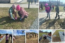 Совместными усилиями они привели в порядок двор, собрали мусор и подготовили школьную землю к весеннему цветению.