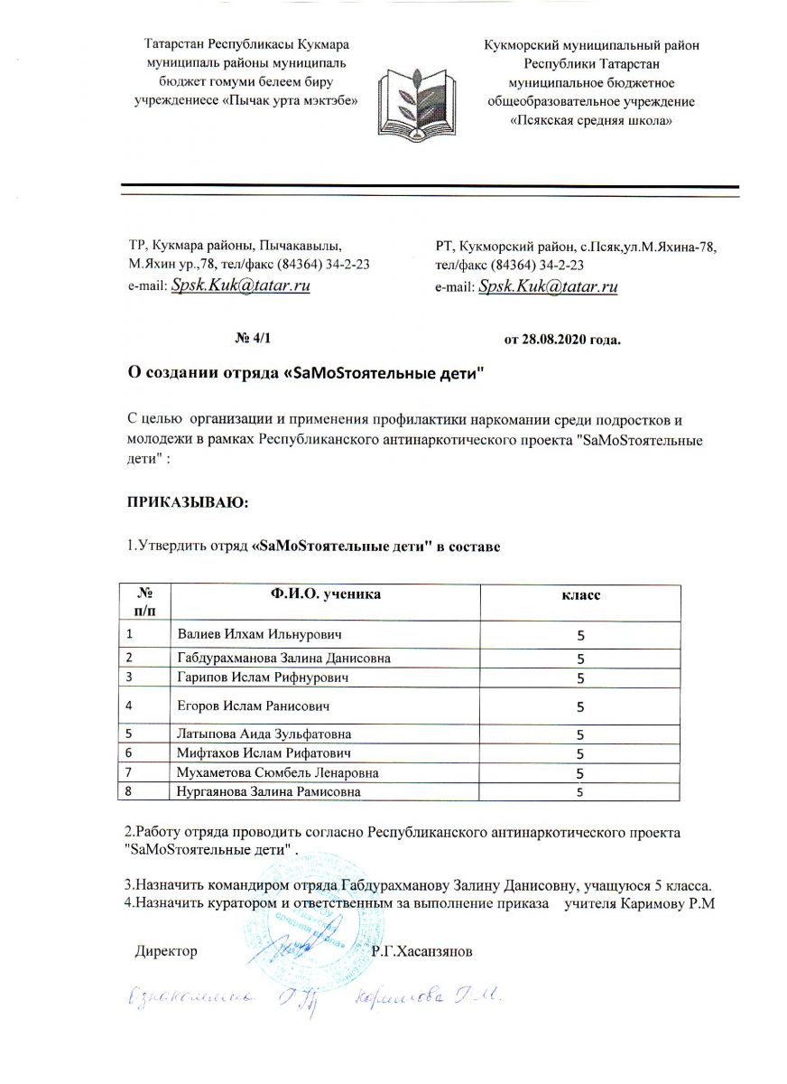 | Адрес: | 422130, Республика Татарстан, Кукморский район, с. Псяк, ул. М.Яхина, д. 78 |
