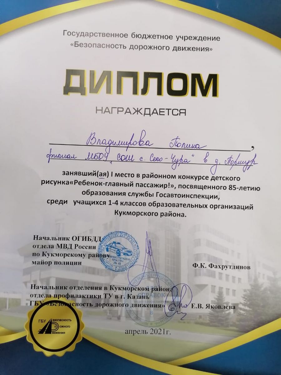 Поздравляем ученицу 3в класса Владимирову Полину, победителя муниципального конкурса «Ребёнок- главный пассажир!» Желаем дальнейших успехов! 3в сыйныфы укучысы Владимирова Полина «Бала- төп пассажир!» Муниципаль конкурсында җиңүче! Котлыйбыз һәм киләчәктә дә уңышлар телибез!