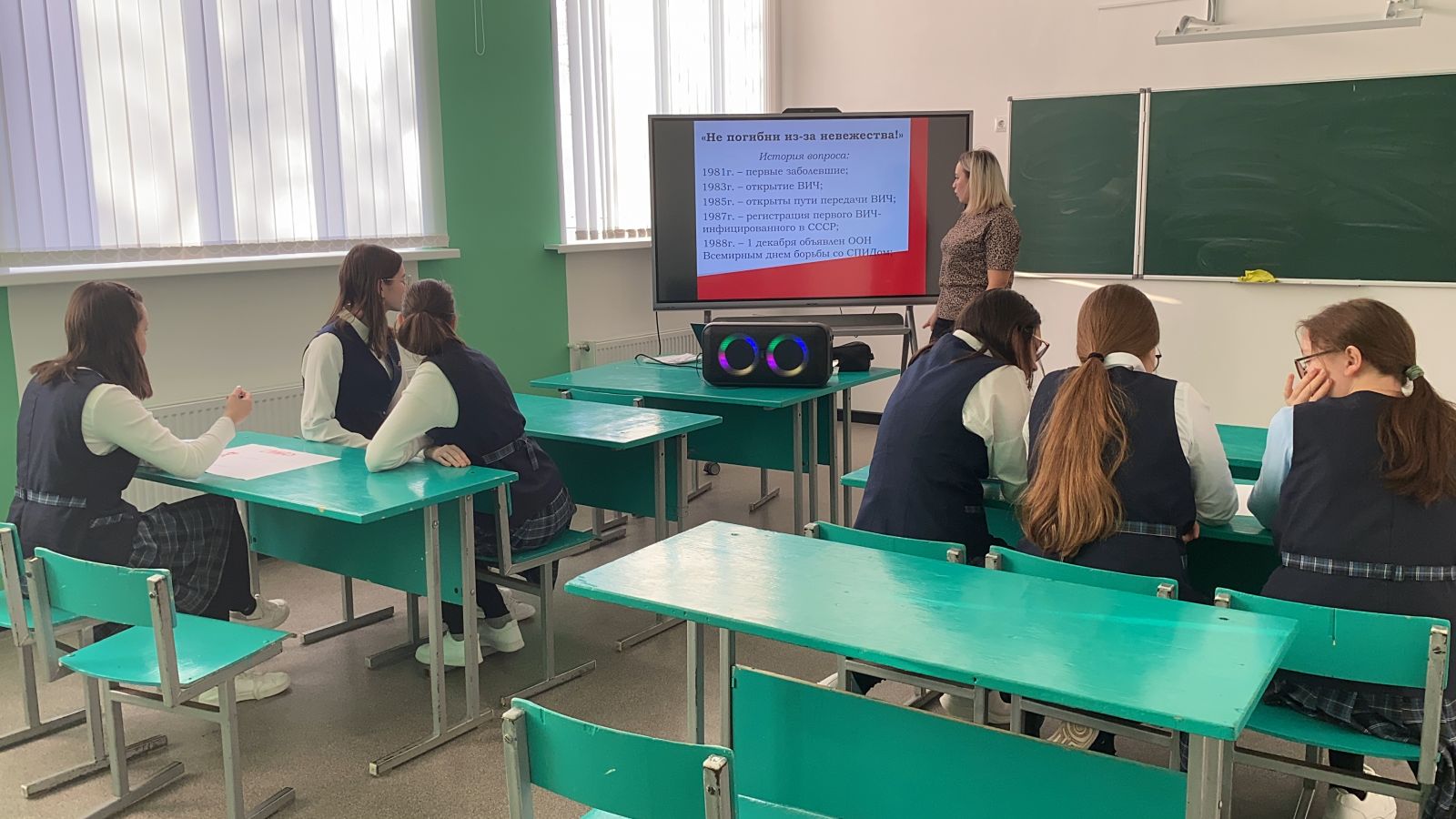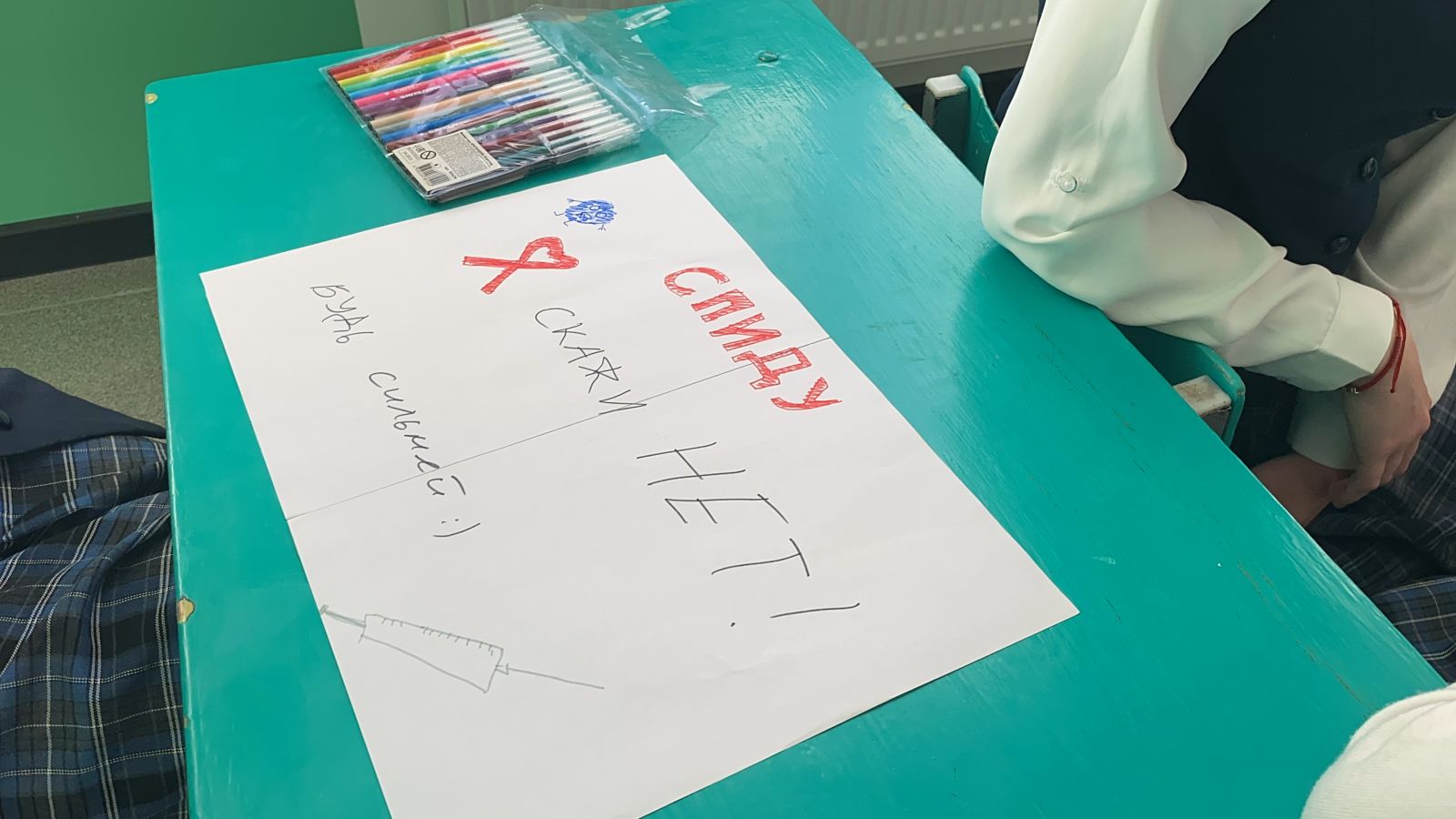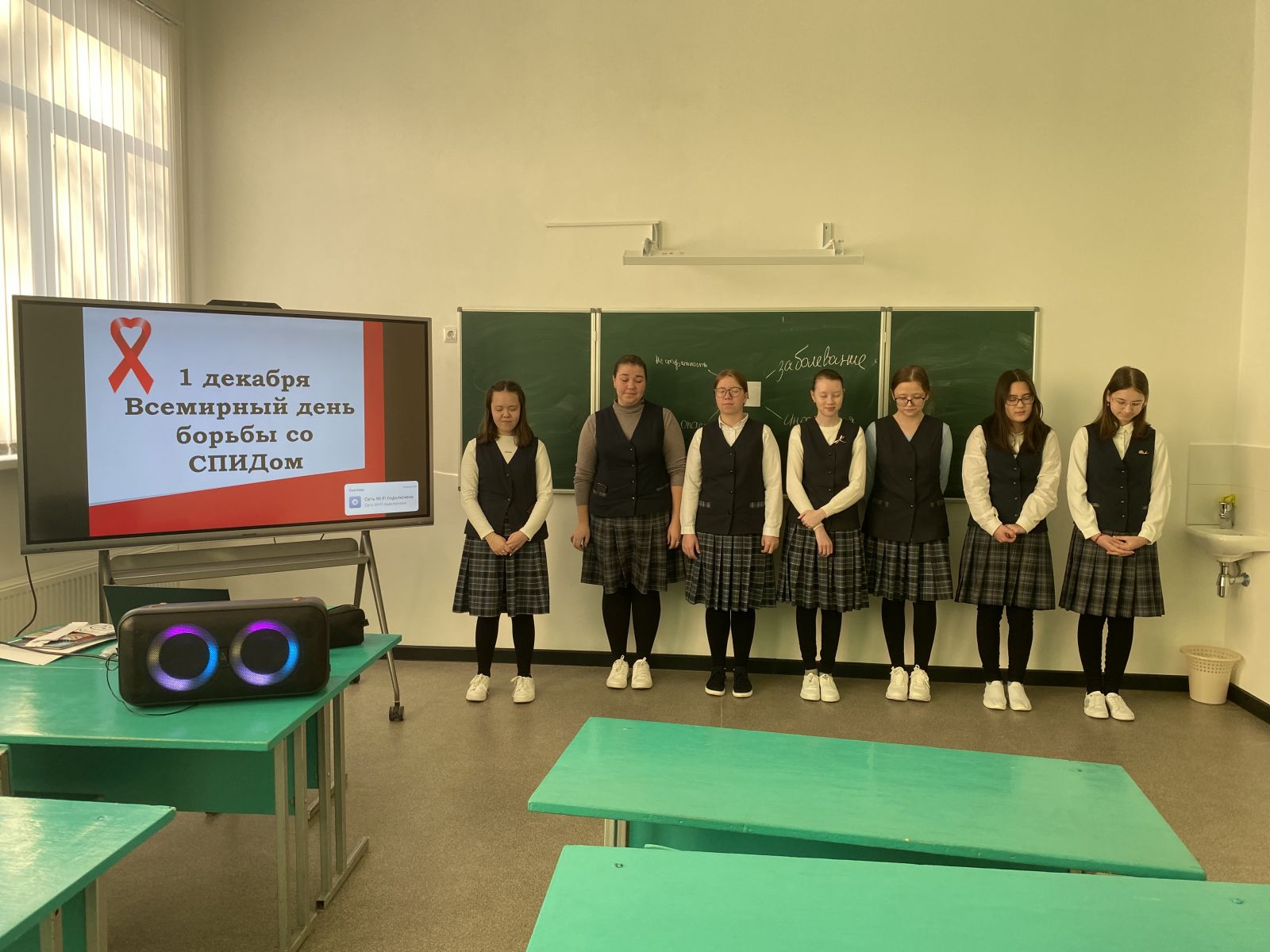 Бүген директор киңәшчесе тарафыннан 10-11 сыйныфлар өчен тренинг дәресе оештырылды, анда балалар ВИЧ һәм СПИДның нәрсә икәнен, аларның таралу юлларын, авыру йоктыру формаларын белделәр. Шулай ук "Без СПИДка каршы" плакатларын да ясадылар.