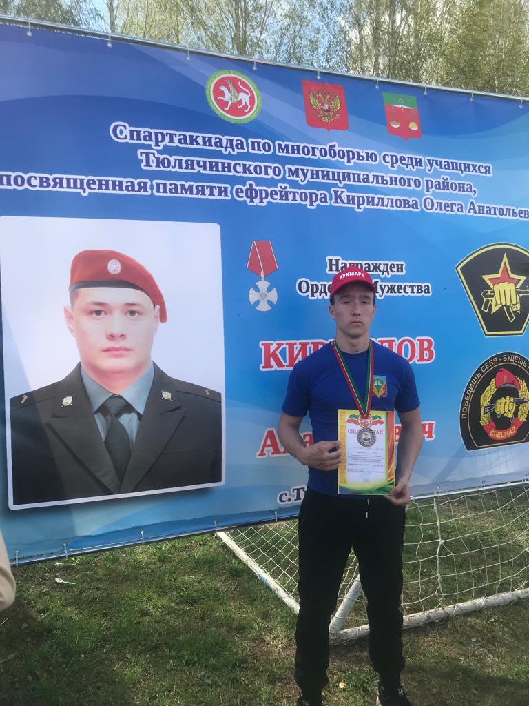 Сегодня в Тюлячах прошла спартакиада по многоборью среди учащихся 5-1классов, посвященный памяти Кириллова Олега Анатольевича. Команда нашей школы была приглашены на эти состязания. По итогам соревнований Матвеев Николай занял 2 место по стрельбе из пневматической винтовки, Николаев Игорь 3 место по подтягиванию на перекладине, Ефремова Евгения 3 место по толканию ядра. После приезда обучающиеся почтили память нашего земляка, посетив его могилу./Бүген Теләчедә Кириллов Олег Анатольевича истәлегенә багышланган 5-11сыйныф укучылары катнашында спартакиада булды. Мәктәбебез укучылары әлеге ярышларга чакырулы иде. Спартакиада нәтиҗәләре буенча Матвеев Николай пневматика мылтыктан ату буенча 2нче урын, Николаев Игорь турникта тартыла буенча 3 урын, Ефремова Евгения шарны күкрәктән этү буенча 3нче урынны яуладылар. Укучылар спартакиадан соң герой якташыбызнын каберендә дә булдылар.