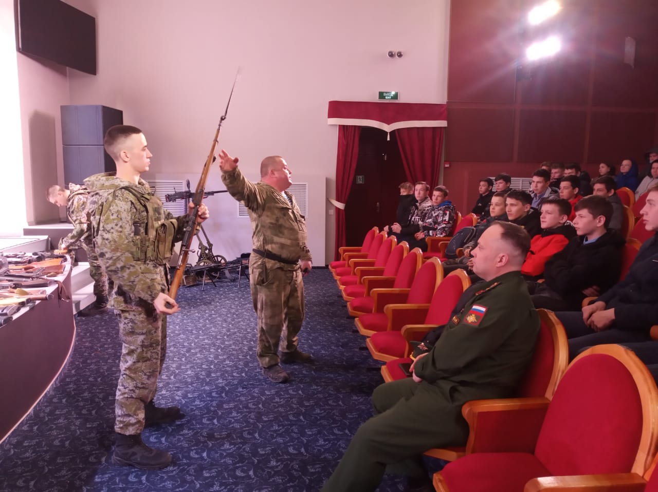 Сегодня в районном доме культуры состоялась встреча с представителями Вятско-Полянского "Центра специальной подготовки им. генерала-лейтенанта В.Г. Асапова". На встречи участвовали юноши 9 класса./Бүген район мәдәният йортында "Генерал-лейтенант В.Г. Асапов исемендәге махсус әзерлек үзәге" вәкилләре белән очрашу узды. Очрашуда 9 нчы сыйныф укучылары катнашты.