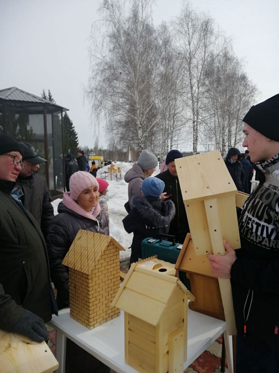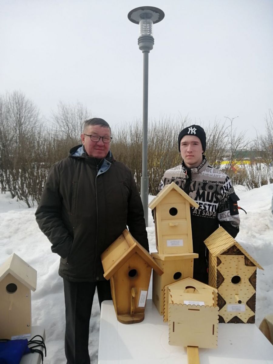 Сегодня в парке им. Булатова состоялся конкурс скворечников. Учитель технологии Азин Р.Р и ученик 9 класса Николаев И. активно приняли участие в конкурсе./Бүген Булатов исемендәге паркта сыерчык оялары конкурсы булды. Мәктәбебез укытучысы Азин Р.Р. һәм 9нчы сыйныф укучысы Николаев И. әлеге чарада актив катнаштылар.