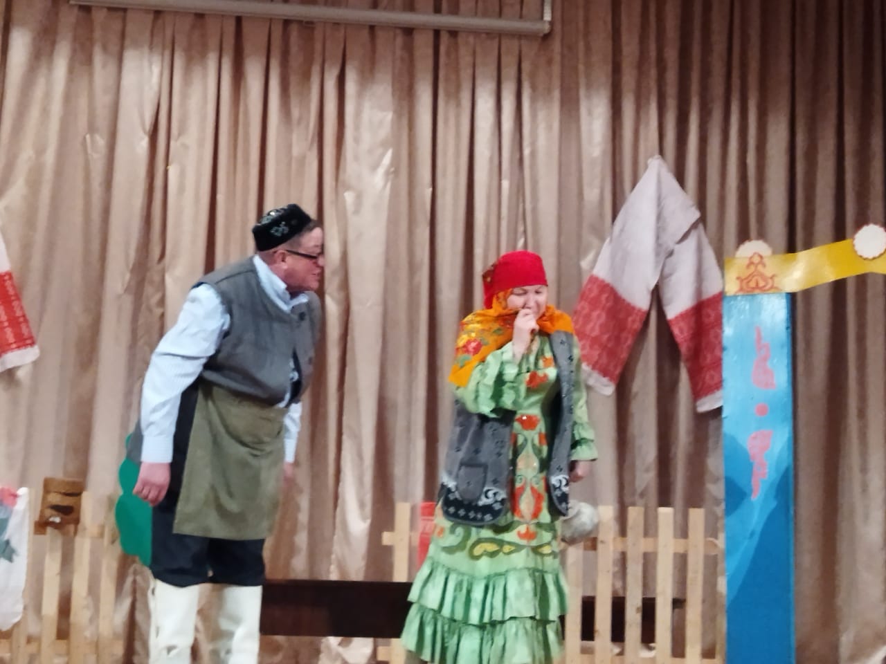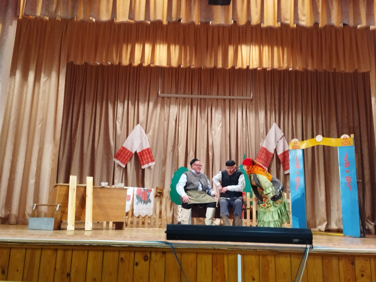 Сегодня педагоги нашей школы приняли участие в районном конкурсе театральных коллективов./Бүген мәктәбебез укытучылар коллективы район театр конкурсы кысаларында Т.Миңнуллинның "Әлдермештән Әлмәндәр" һәм "Гөргөри кияүләре" пьесаларын сәхнәләштерделәр.