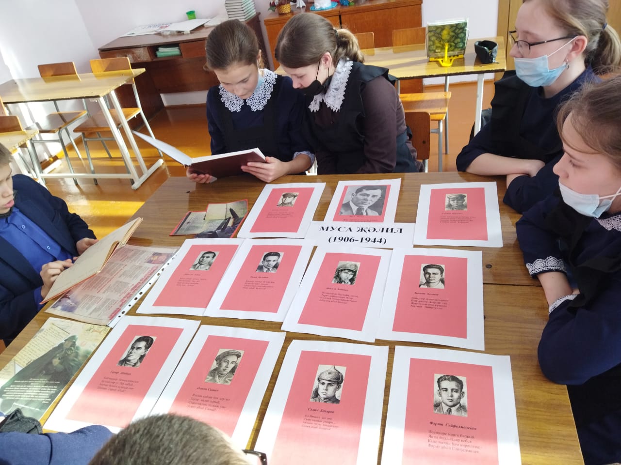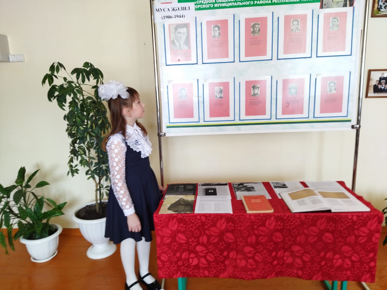 В честь 116 –летия со дня рождения поэта-героя Мусы Джалиля была организована выставка и проведены мероприятия о жизни и творчестве поэта./Герой-шагыйрь Муса Җәлил тууга 116 ел тулу уңаеннан тормыш юлы һәм иҗаты буенча күргәзмә оештырылды, чаралар уздырылды. Укучылар язучының шигырьләрен сөйләделәр. Җәлилчеләр турында мәгълүмат бирелде.