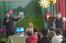 Җырчы, язучы, пародия остасы Алмаз Хәмзин укучылар белән очрашуга килде. 1 сәгать барган җырлы, уен-көлкеле очрашу бик тә матур үтте. Тамачашы рәхәтләнеп күңел ачты. Очрашу ахырында һәр тамашачыга бүләк -"Казан утлары" һәм "Сабантуй" журналлары булды.