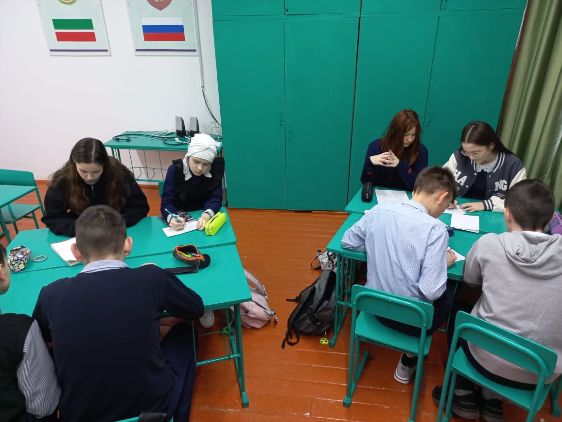 Математика атналыгы кысаларында укытучы Ахметова Лилия Райнуровна 8 сыйныф укучылары белән "Математика сукмаклары буйлап" дип аталган уен-ярыш үткәрде. Бу ярышта укучылар "Танграм" дип аталучы Кытай башваткычы белән таныштылар, геометрик фигураларның мәйданнарын исәпләделәр,крассвордлар чиштеләр.