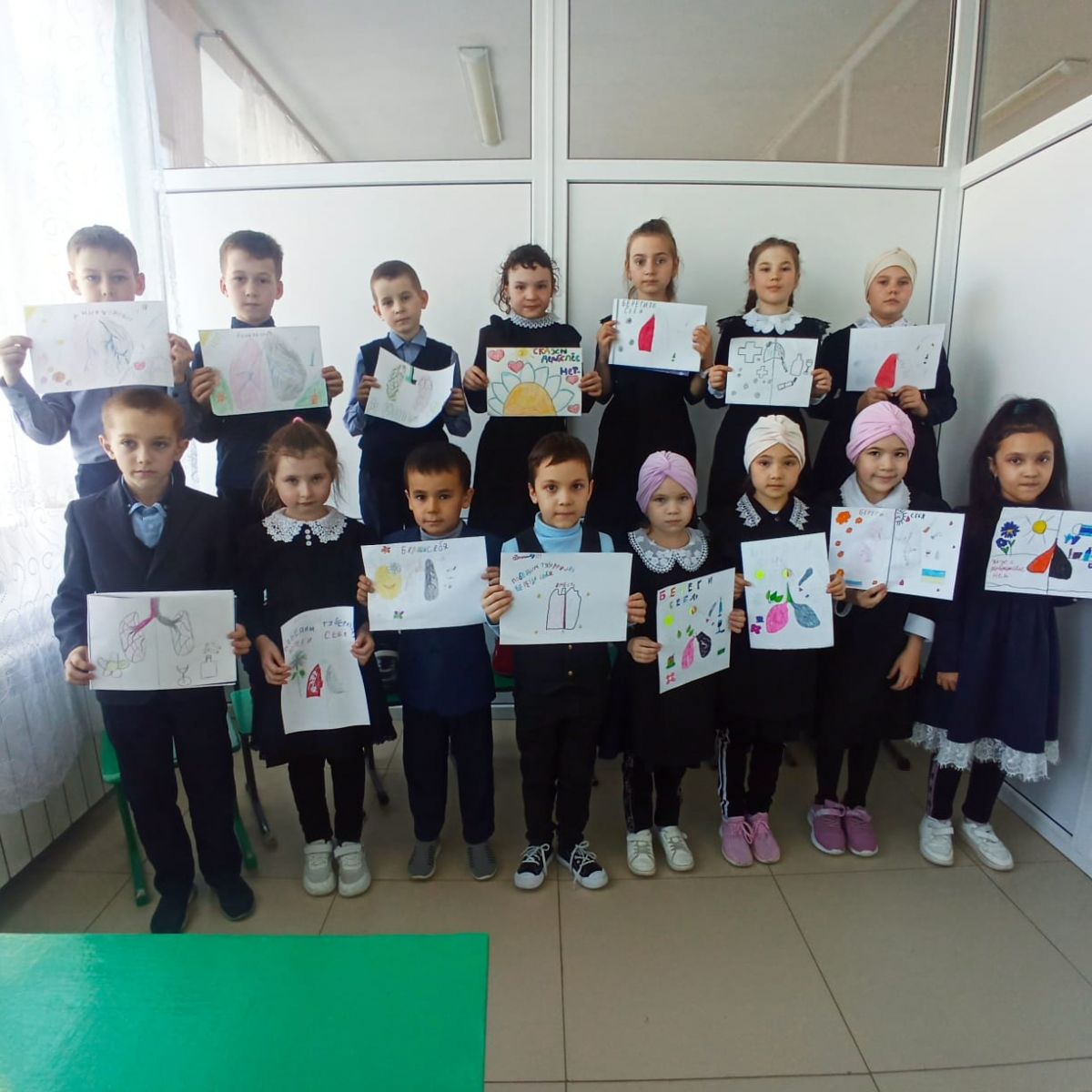 Башлангыч сыйныф укучылары "Туберкулезга каршы көрәш" акциясендә катнаштылар. Белемнәрен арттырдылар, лозунг, плакатлар ясадылар