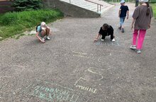 Лагерьның беренче көне Балаларны яклау көне белән туры килә. Элеге чарадан без дә читтә калмадык. Балалар белән бергәләп рәсемнәр ясадык, әңгәмә үткәрдек һәм аларның яраткан шөгыле- асфальтка рәсемнәр ясадык.