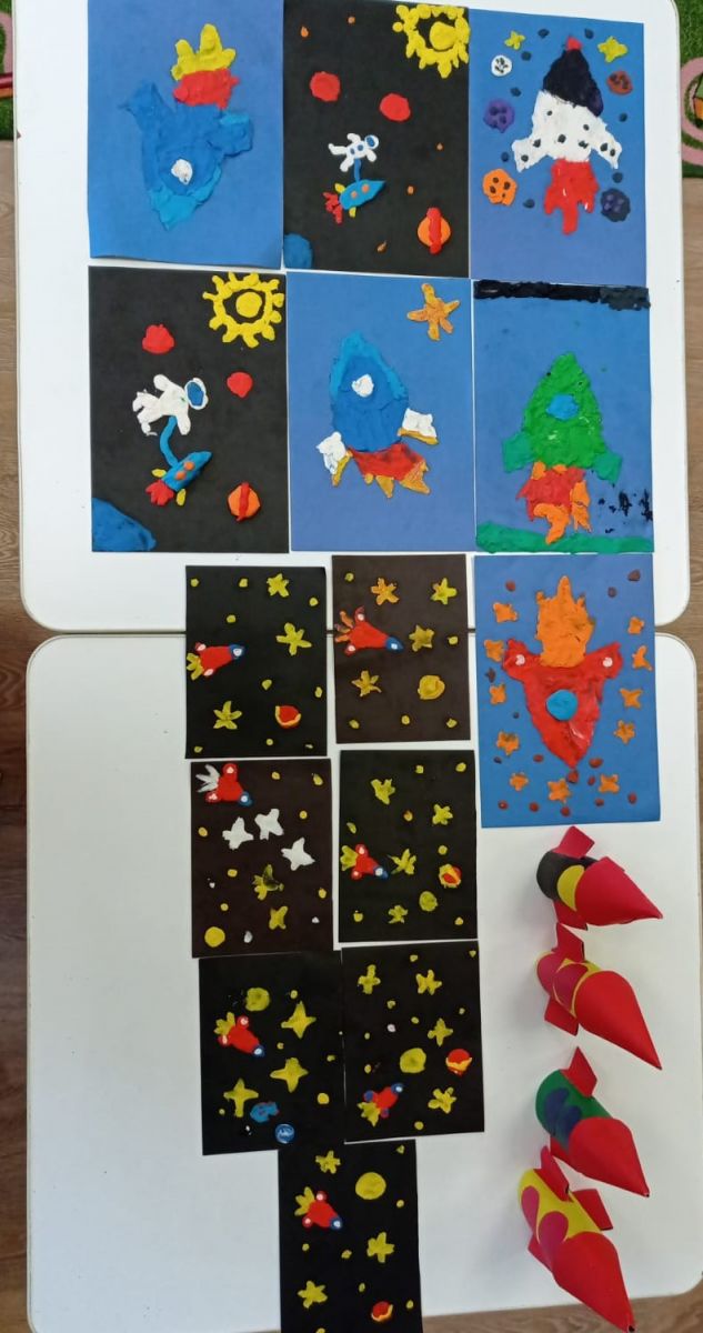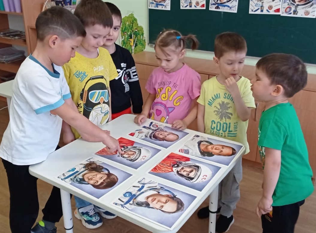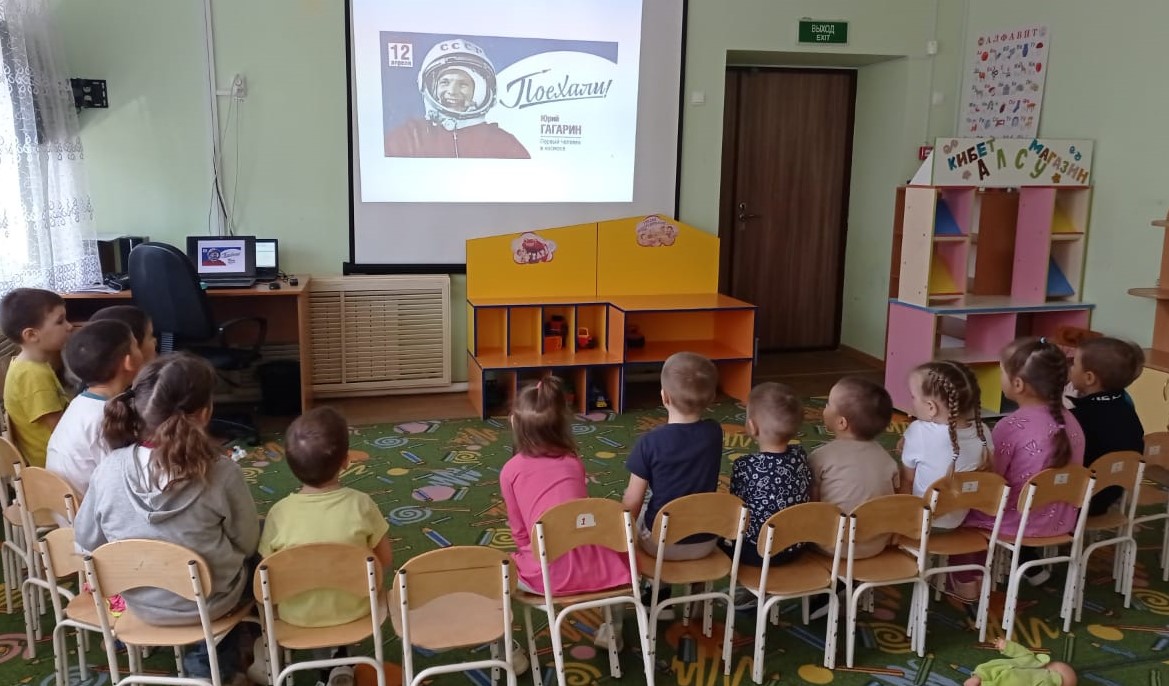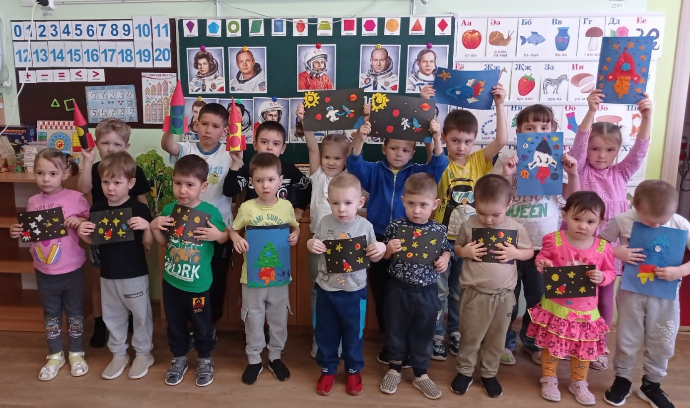 12 апрель- косманавтика көнен билгелэп үтэбез. Балалар белэн "Космос хэм Юрий Гагарин" дигэн темага әңгәмә үткэрдек. Балалар космос хэм 1961 елның 12 апреленьдэ "Восток" космик кораблендэ Юрий Гагаринның жир тирэли зур очыш ясаганын белделэр.