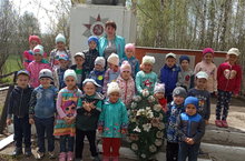 Мәктәпкәчә яшьтәге төркемдә җиңү көне билгеләп үтелде. Балаллар тәрбияче апалары белән бабайларның зур җиңүләре турында сөйләштеләр, кемнәрнең бабайлары, әбиләре сугышта булу турында әңгәмә үткәрделәр. Һәйкәл янына барып сугышта үлеп калган әби-бабайлар истәлегенә чәчәк куйдылар.
