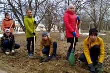 Учащиеся посадили саженцы деревьев и кустарников вокруг школы