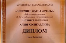 Поздравляем ученицу 2 Г класса Халиуллину Алию(кл. рук. Хасбиева Гульназ Еллыевна) с 3 местом в конкурсе "Әниемнең җылы кочагы"/2 нче сыйныф укучысы Хәлиуллина Алияне (сыйныф җитәкчесе Хасбиева Г.Е.) "Әниемнең җылы кочагы"конкурсында 3 урын алуы белән котлыйбыз! 22.12.2022