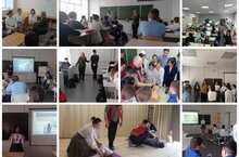 была организована встреча с Российским Красным Крестом, где учеников 8,10,11 классов обучали оказанию первой помощи;