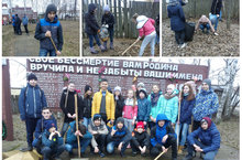 Учащиеся 7б класса на очистке территории памятника у КВВК.