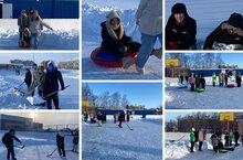 Сегодня МО учителей иностранных языков и естественно-научного цикла провели зимние игры на катке. Перед играми трудовой десант очистил территорию от снега. Участвуя в спортивных играх дети получили огромный заряд бодрости и хорошего настроения