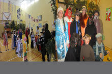 Марафон новогодних представлений начался с веселой профсоюзной елки для детей сотрудников школы. Программа, подготовленная учащимися 10А класса, имела необыкновенный успех, все принимали активное участие в конкурсах и играх, которые предлагали сказочные герои.