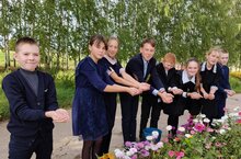 Учащиеся 7 класса присоединились к Всероссийской акции "Капля жизни". " Напоили" из чаши с водой цветы на пришкольном участке - символически поделились с теми, кого уже нет.