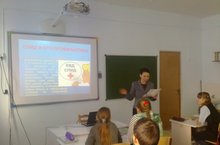 Лекцию на тему: «СПИД и его профилактика» провела М.И. Юркеева в 9 классе.