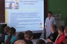 21 апреля фельдшер Среднекуморского ФАП Файзуллина Р.П. в наглядной форме рассказала о значении донорства.