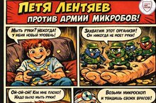 Выходит первый выпуск новой образовательной серии комиксов «Приключения Пети Лентяева». В комиксе «Личная гигиена» наш герой Петя вступает в увлекательную борьбу с армией коварных микробов. Вместе с ним юные читатели узнают, какие секретные приемы помогут победить невидимых врагов. Подробнее -->