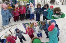 С утра ребятишки пришли в садик, такие довольные, счастливые, удивлённые, вроде только говорили про "Осень", а тут бац и "Зима" наступила. Оглянуться не успели. Вот и осень пролетела! На дворе выпал первый снег, а это значит, что к нам в гости заглянула зима! Ребята с нетерпением ждали прогулку и вот после занятий мы вышли на прогулку и все дружно взялись за работу: девочки пекли пироги, мальчики метали снежки в цель .Время пролетело и мы радостные с раскрасневшимися щечками пошли обедать.