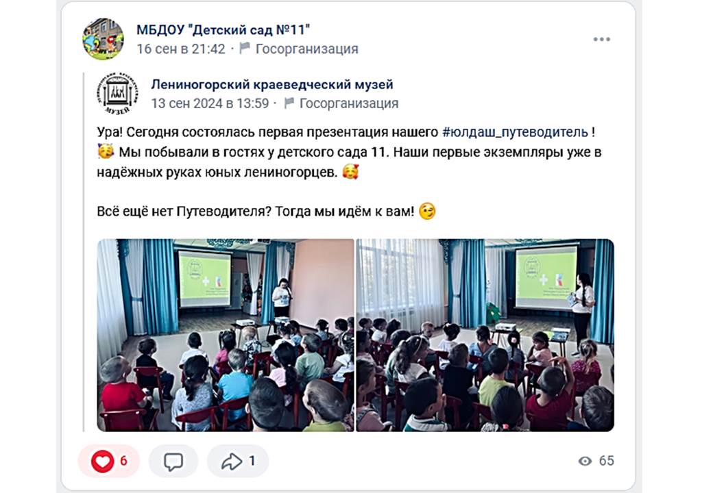 В 2024 году при поддержке Президентского фонда культурных инициатив Лениногорский краеведческий музей создал детский путеводитель «Путешествуем с Юлдашем». И сегодня Юлдаш "побывал" в гостях в нашем детском саду. Ребята слушали увлекательные рассказы о достопримечательностях родного города и района, смотрели красочную презентацию. В конце встречи каждому ребёнку сотрудники музея подарили книгу-альбом "Путешествуем с Юлдашем"