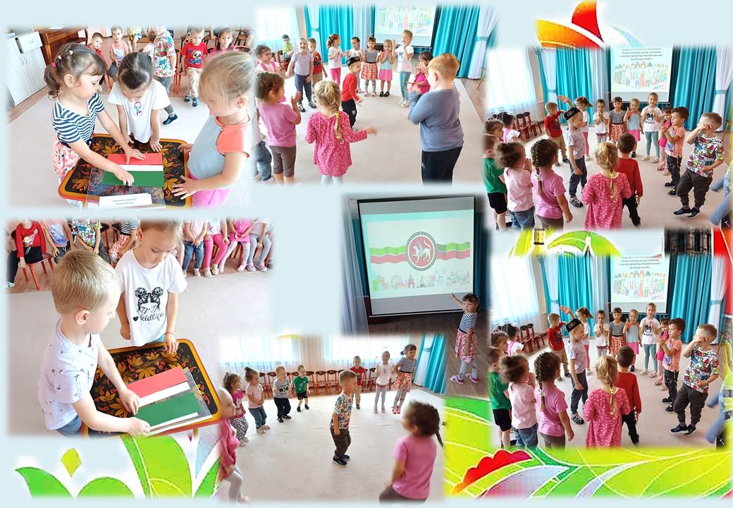 28 августа в нашем детском саду прошло познавательное мероприятие «Мин яратам сине Татарстан», посвященный Дню Республики Татарстан. В начале мероприятия ребята прослушали гимн Татарстана. Затем с интересом участвовали в беседе о государственных символах Республики Татарстан, тем самым обогатили свои знания о государственной символике Татарстана: гербе, флаге, гимне. На празднике дети с увлечением играли в игры "Тюбетейка " , "Минлебай"