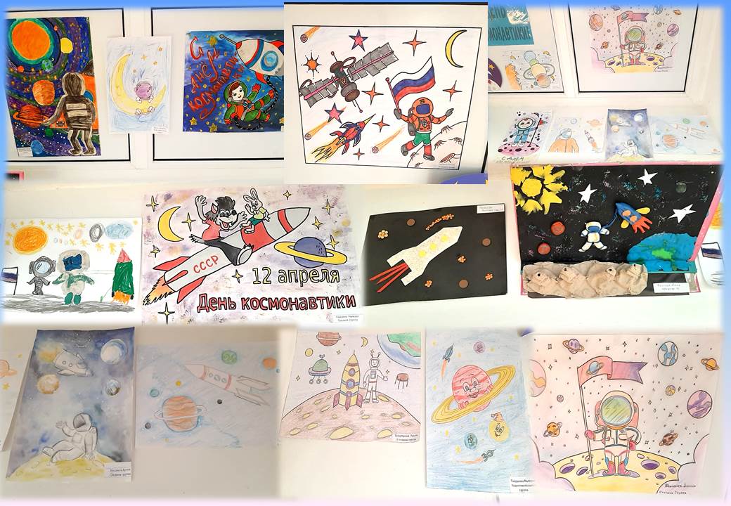 В детском саду в преддверии праздника День Космонавтики была проведена выставка творческие работ.