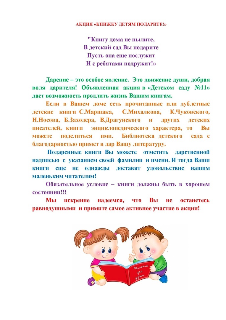 В детском саду проводится акция "Подари книжку" , приуроченная к Международному дню детской книги с целью воспитания из маленьких читателей больших любителей книг.