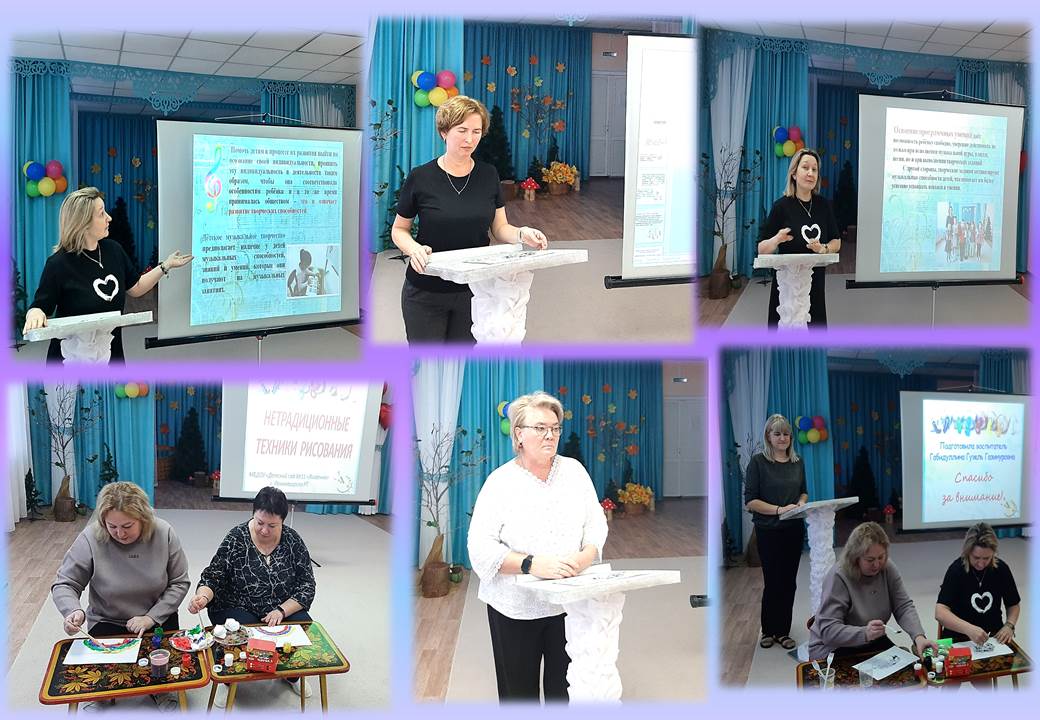 20 ноября в детском саду прошёл педсовет на тему "Развитие творческого потенциала личности дошкольника через организацию работы по художественно-эчтетическому развитию". Для педагогов были проведены консультации, выступления с сообщением из опыта работы, мастер-класс с целью повышения теоретического и практического уровня знаний педагогов о развитии творческого потенциала личности дошкольника.