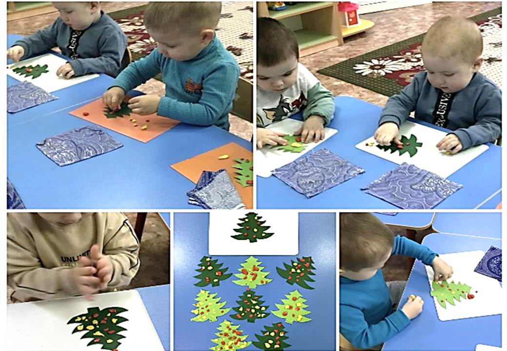 Малыши 1 младшей группы продолжают украшать ёлочки к предстоящему празднику Новый год