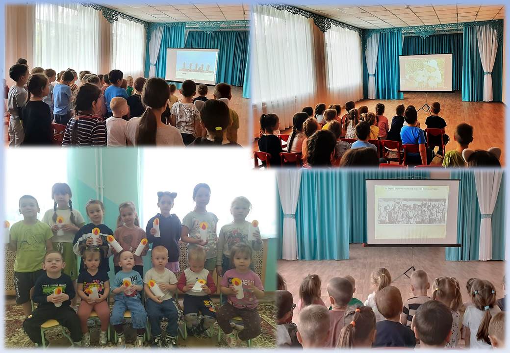 В истории нашей страны есть особые даты. Одна из важнейших – 22 июня День памяти и скорби по всем погибшим в годы Великой Отечественной войны. Воспитание любви к Родине невозможно без знания ее истории, великих и печальных дат. Поэтому День 22 июня более подходит для того, чтобы на историческом примере показать детям, насколько велик наш народ. В детском саду прошли мероприятия, посвященные Дню памяти и скорби. В этот день педагоги детского сада провели с ребятами беседы о Великой Отечественной войне, рассказали о героизме советских солдат. Ребята разучили стихи о войне, о подвиге нашего народа, о родной стране, о мире. Воспитанникам старшего дошкольного возраста был показан видеофильм "Девочка ищет отца".