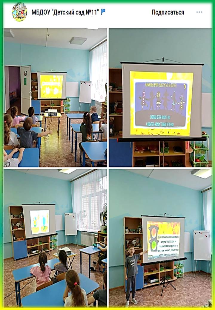 В рамках Всероссийской недели безопасности дорожного движения с 15 по 21 сентября в детском саду проходят различные мероприятия: "минутки безопасности", беседы, обсуждения опасных ситуаций на дороге и др. Ребята старших групп сходили на экскурсию к пешеходному переходу, обсудили сюжетные картинки, вспомнили дорожные знаки и их значения.