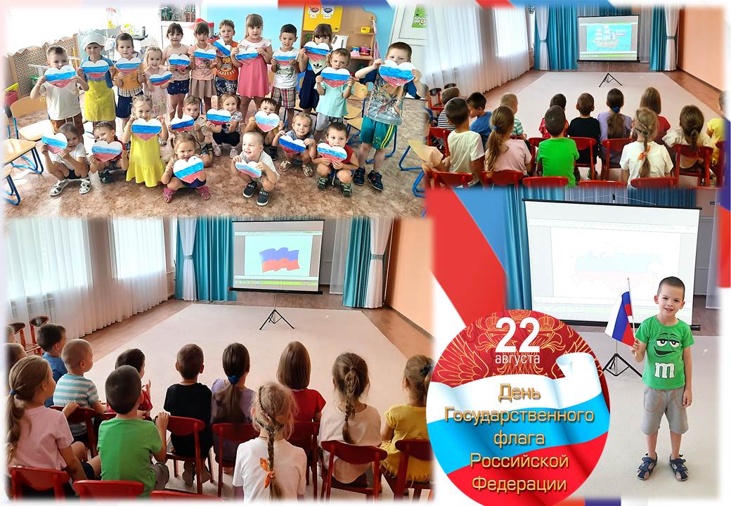 Ел саен 22 августта Россиядә Дәүләт флагы көне билгеләп үтелә. Безнең балалар бакчасында Россия флагы көненә багышланган чаралар узды.