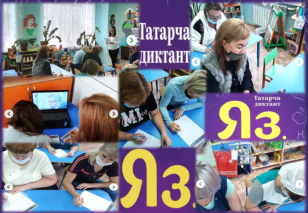 Татар телен өйрәнү белән кызыксынуны арттыру, "Татар халкының милли үзенчәлеген саклап калу (2020-2023 еллар)" Татарстан Республикасы дәүләт программасы кысаларында грамоталы хат культурасын үстерү һәм грамоталылыкка игътибар җәлеп итү максатыннан, 10 сентябрь көнне безнең балалар бакчасы хезмәткәрләре һәм ата-аналары "Татарча диктант" белем бирү акциясендә катнаштылар.
