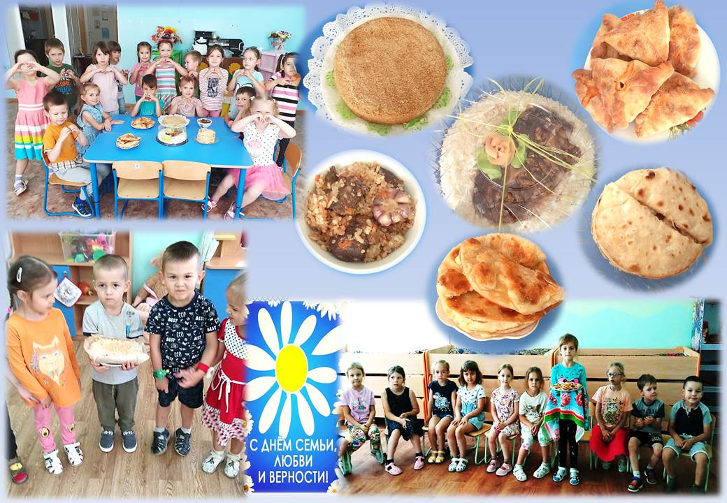 8 июльдә Россиядә бернигә дә охшамаган, рухи һәм тирән бәйрәм - Гаилә, мәхәббәт һәм тугрылык көне билгеләп үтелә. Гаилә кеше тормышында бик зур урын алып тора. Әгәр кеше аның турында берни дә белми икән, ул җирдә иң мөһиме - җылы һәм игътибардан мәхрүм. Туган – тумачаларга һәм якыннарына карата мәхәббәт һәм хөрмәт тәрбияләү, ата-аналарның фамилиясен, исемен һәм атасының исемен, нәсел-нәселен, гаилә традицияләрен һәм гореф-гадәтләрен белү-мәктәпкәчә яшьтәге балаларга рухи-әхлакый һәм патриотик тәрбия бирүнең төп эчтәлеге. Бу көнне әниләр һәм әбиләр Татарстан халкының милли гаилә ашлары: рус, татар мордва, чуаш, башкорт һ. б. бик тырыштылар һәм бәйрәмгә әзерләделәр .Тәрбиячеләре балалар өчен бәйрәм һәм төрле файдалы ризыклар турында кызыклы презентацияләр үткәрделәр. Балалар шигырьләр сөйләделәр, җырлар, такмаклар җырладылар, табышмаклар әйтештеләр, халык уеннары уйнадылар. Бу көн балаларда һәм педагогларда уңай эмоцияләр генә түгел, ә барыбызны да гаилә һәм үз халкының гореф-гадәтләренә карата хөрмәт, мәхәббәт хисләре белән берләштерде.