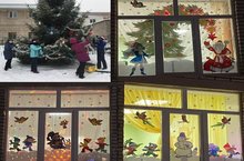 Создавая сказочную атмосферу в определенной тематике, коллектив нашего детского сада с помощью семей воспитанников украсил здание как снаружи, так и внутри, чтобы порадовать детей и их родителей. Вечером зажигаются гирлянды, а днем в окнах красочные сказочные персонажи, лесные звери, водят хоровод вокруг елки с Дедом Морозом и Снегурочкой.