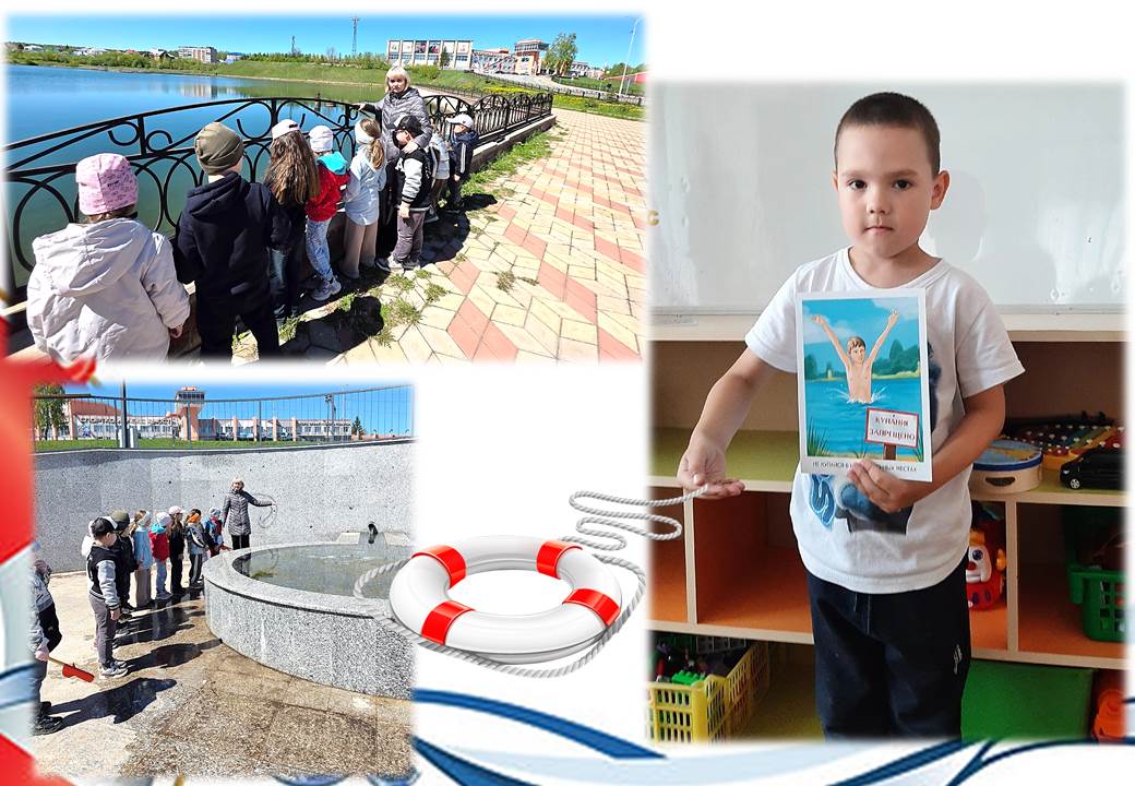 Безопасность на воде и водных объектах. В нашем детском саду прошли профилактические мероприятия с детьми и их родителями, направленные на пропаганду соблюдении правил поведения на воде и водных объектах в летний период. Педагоги вместе с детьми рассматривали картинки, иллюстрации с изображением различных водоемов, обитателей водной среды, серию картинок «Вода друг или враг". Беседовали с детьми на темы «Опасное время года», «Вода для жизни, с водой не шути», рисовали рисунки по безопасности на водных объектах. С воспитанниками подготовительной к школе группы была проведена познавательная экскурсия на водоемы города. Для родителей были подготовлены рекомендации и папки- передвижки на тему "Безопасность детей на воде".