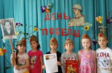 Накануне 9 мая в детском саду прошел праздник в старшей и подготовительной группах, посвященный дню Великой Победы. Праздник был подготовлен с целью формирования у детей знаний о Великой Отечественной войне, обогащения знаний дошкольников об истории своей страны, воспитания чувства гордости за героизм нашего народа, воспитания устойчивого интереса к армии. Дети с гордостью показывали фото и рассказывали о своих родственниках, воевавших в ВОВ. В программу мероприятия вошли песни о празднике победы, о мире, о солдатах, танцы, стихи о войне, о бессмертном подвиге защитников Отечества.